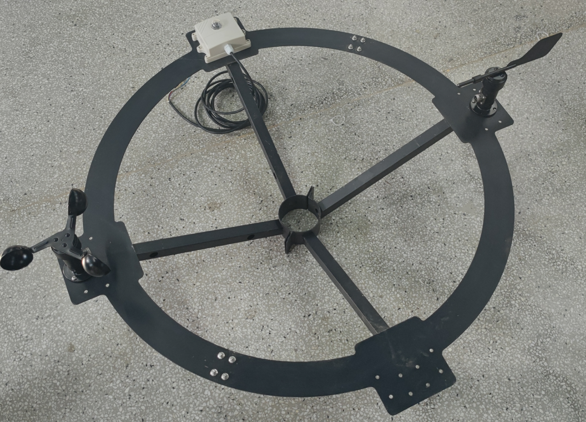 1、傳感器固定:圓盤正前方固定光照傳感器,左右兩側(cè)固定風(fēng)速、風(fēng)向傳感器